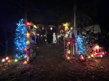 I put up four trees this past Christmas. All four with lights and two with decorations. Three of those trees are outside our camper and bring me so much happiness. The other one was over at the in-law's place. (I put up the Christmas tree because they just moved and had so many other things to worry about.) All of the festive lights have really helped light up the area around our camper. Some of the decorations I got from my parent's house and were the decorations that my dad would put out every year when I was a kid. He was pretty great at decorating their house with lights and light up decorations. Having the decorations around here has made it feel like a piece of him was with me through the holidays.